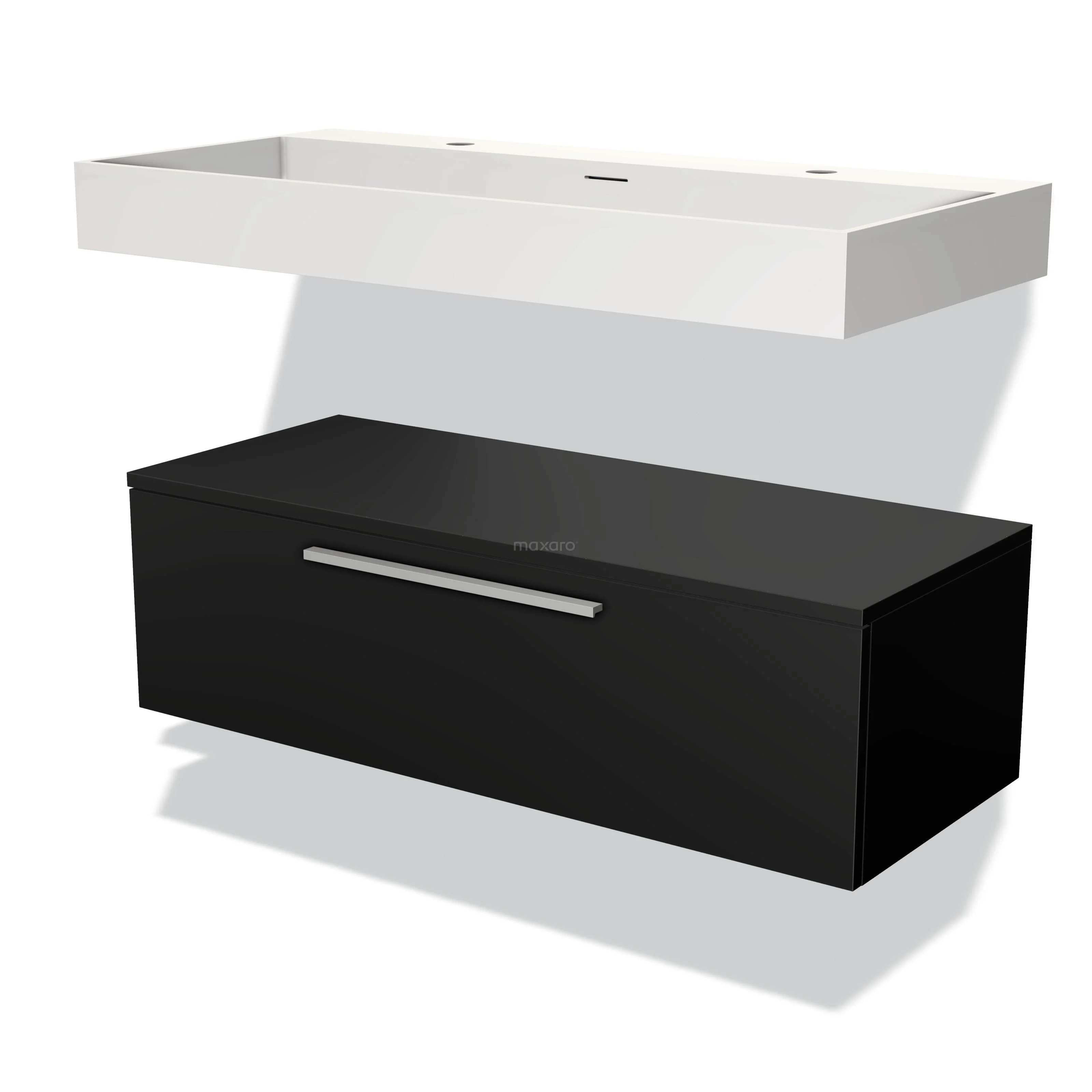 Badmöbel 100 cm Modulo Matt Schwarz 1 Schubladen-Flachwaschbecken Solid Surface