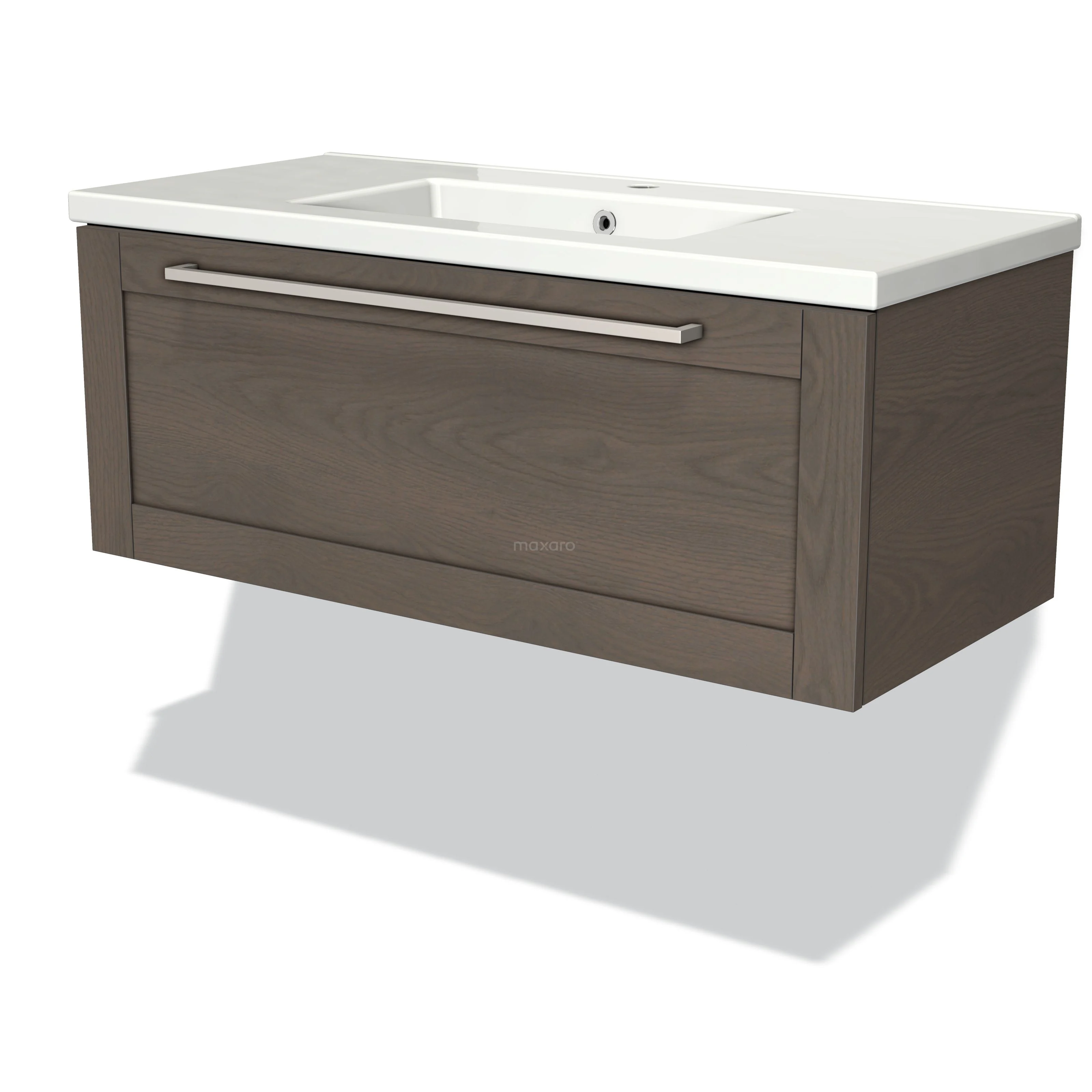 Badmöbel 100cm Modulo dunkelbraune Eiche 1 Schublade Rahmen Waschbecken Keramik