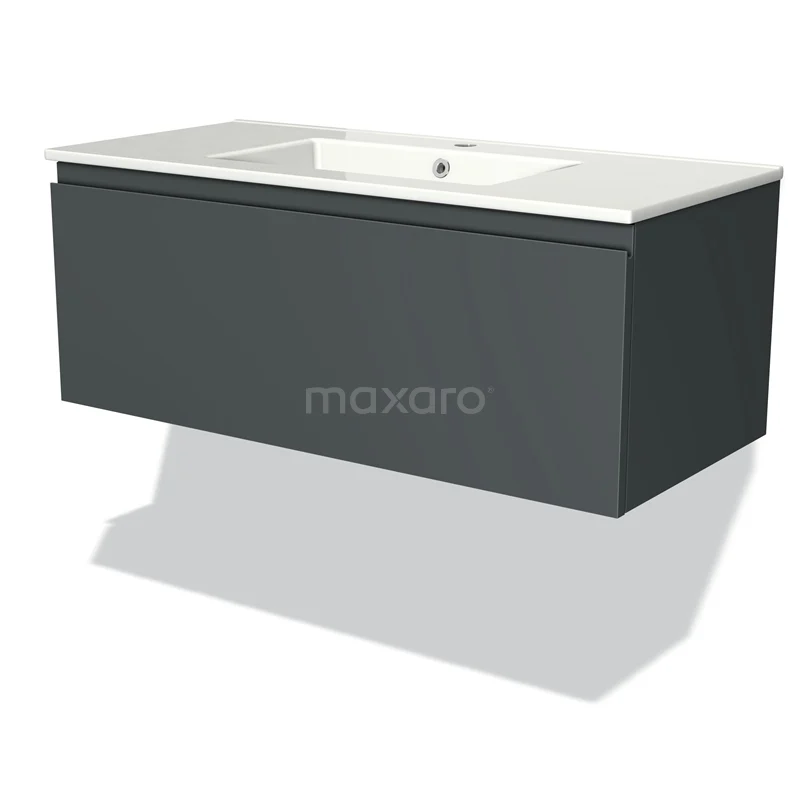 Das bodenstehende Badmöbel (100 cm) ist das Herzstück für die tägliche Körperpflege wie Schminken, Rasieren oder Zähneputzen. Das Waschbecken hat 1 Hahnloch und ist ideal für die gleichzeitige Benutzung durch 1 Person. Das Möbel bietet außerdem genügend Platz, um Ihre WC- und Pflegeprodukte ordentlich zu verstauen.