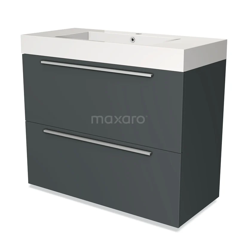 Badmöbel 100cm Modulo Dunkelgrau 2 hohe Schubladen Flaches Waschbecken Mineralguss