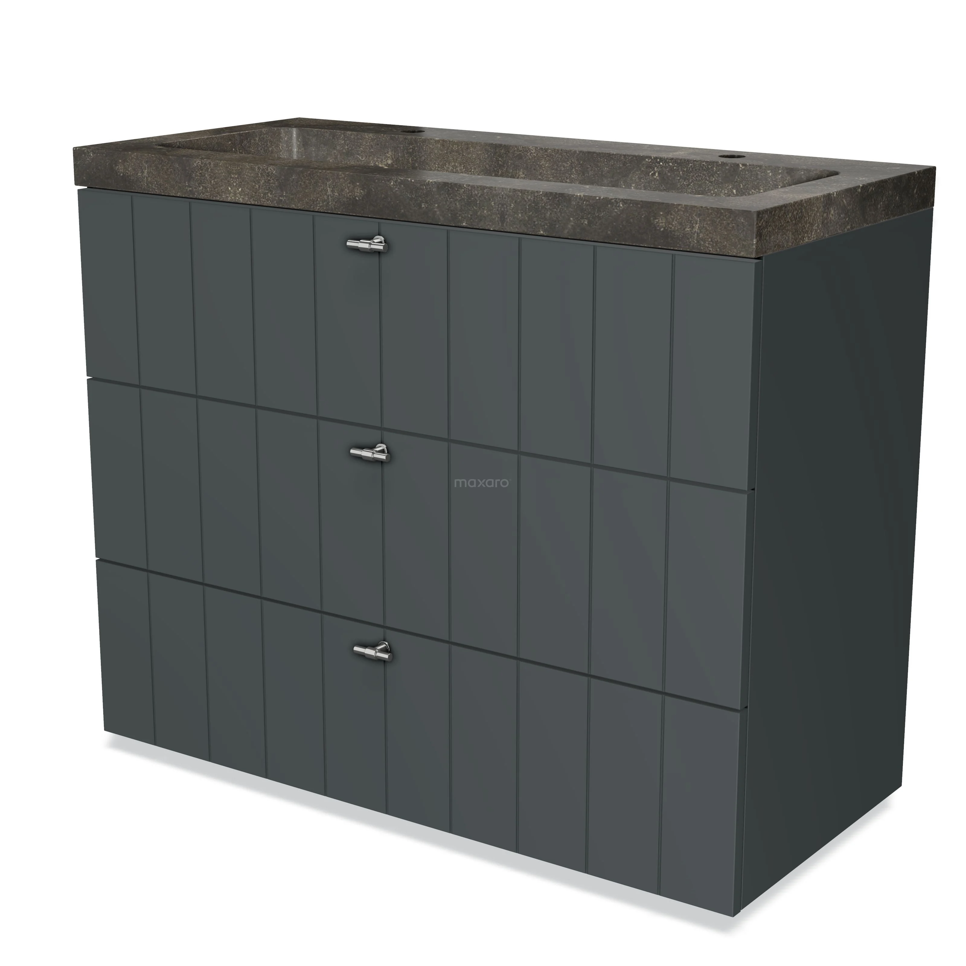 Badmöbel 100cm Modulo Dunkelgrau 3 Schubladen Waschbecken aus Naturstein Blaustein