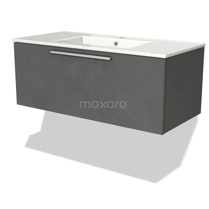 Badmöbel 100cm Modulo Dunkelgrau Beton 1 Schublade Flaches Waschbecken Keramik