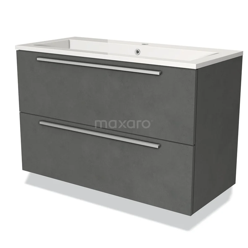 Badmöbel 100cm Modulo Dunkelgrau Beton 2 Schubladen Flaches Waschbecken Mineralguss