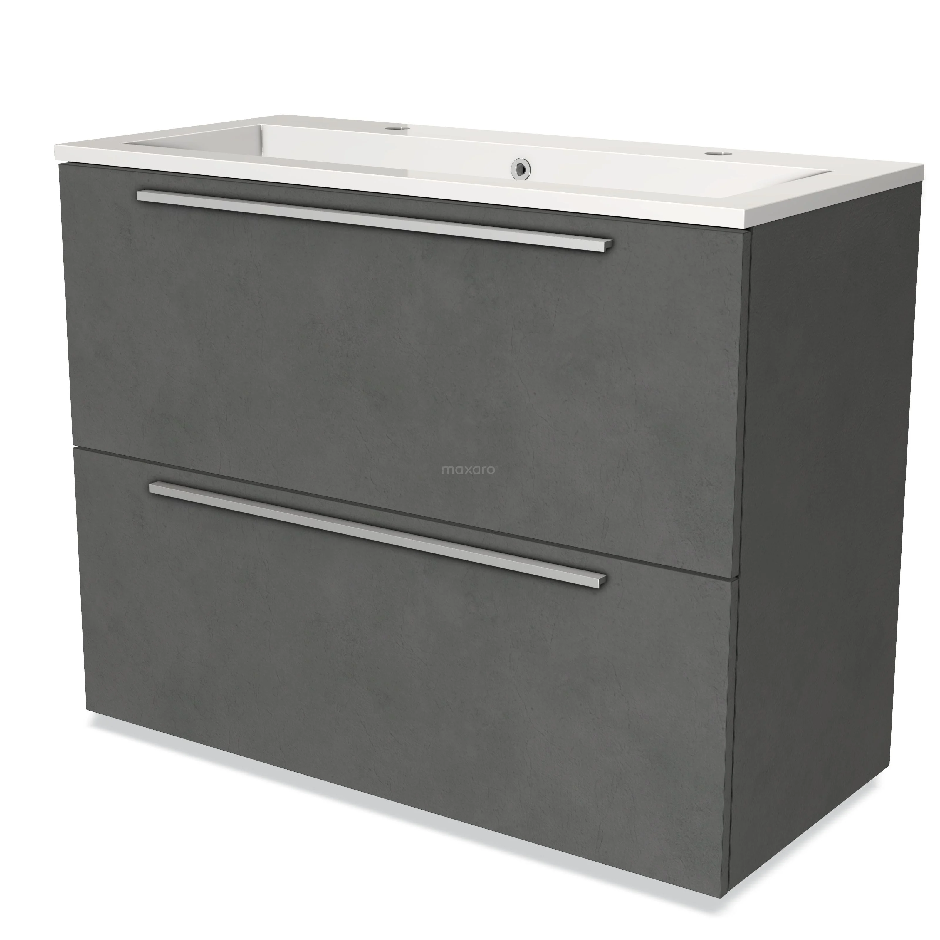 Badmöbel 100cm Modulo Dunkelgrauer Beton 2 hohe Schubladen Flaches Waschbecken Mineralguss