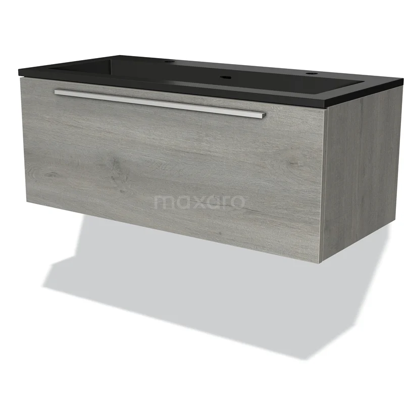 Modulo Waschtische | 100 cm Graue Eiche Flach front Quarz 1 Schublade