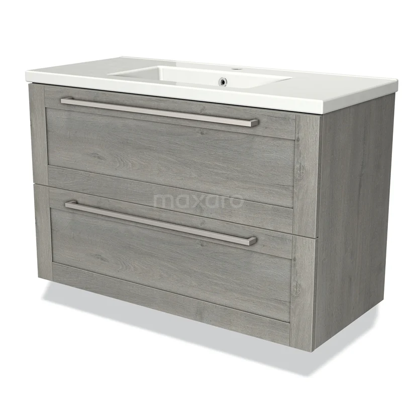 Badmöbel 100cm Modulo Graue Eiche 2 Schubladen Rahmen Waschbecken Keramik