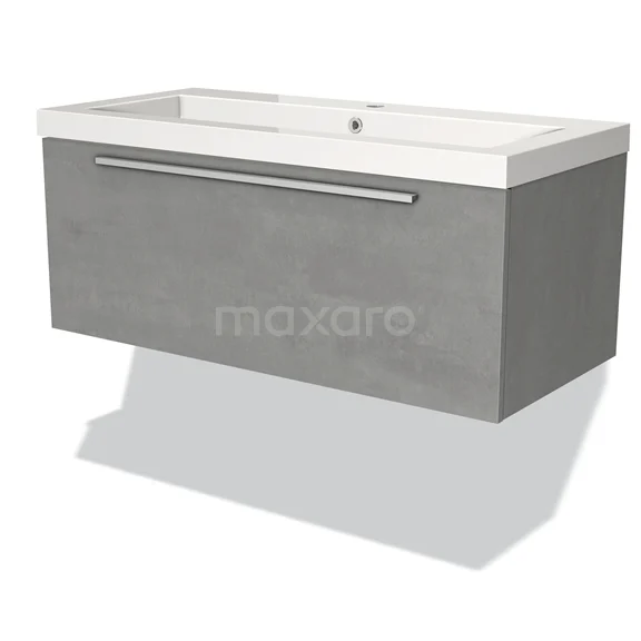 Badmöbel 100cm Modulo hellgrauer Beton 1 Schublade Flaches Waschbecken Mineralguss