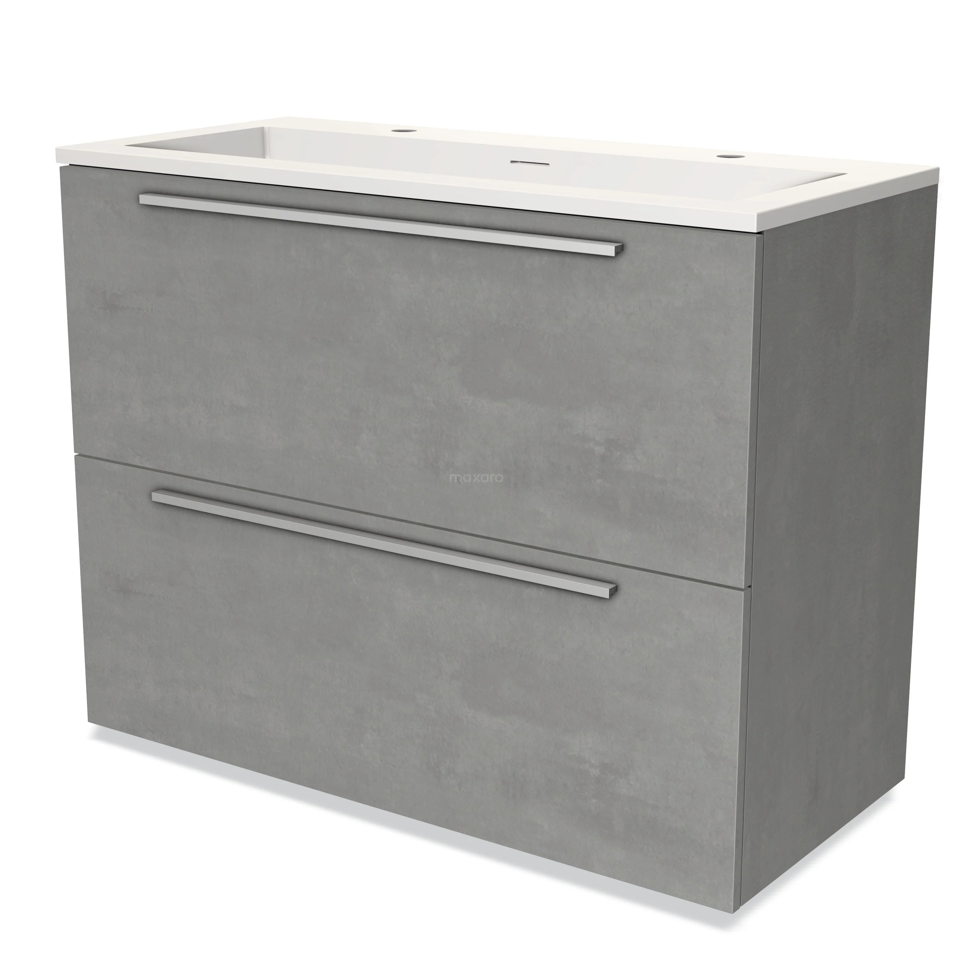 Badmöbel 100cm Modulo hellgrauer Beton 2 hohe Schubladen Flaches Waschbecken Solid Surface