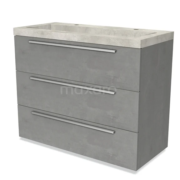 Badmöbel 100cm Modulo hellgrauer Beton 3 Schubladen Flaches Waschbecken Beton