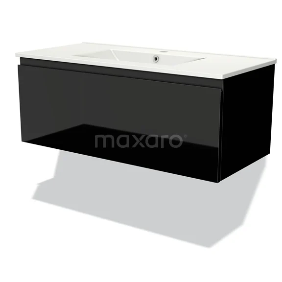 Das bodenstehende Badmöbel (100 cm) ist das Herzstück für die tägliche Körperpflege wie Schminken, Rasieren oder Zähneputzen. Das Waschbecken hat 1 Hahnloch und ist ideal für die gleichzeitige Benutzung durch 1 Person. Das Möbel bietet außerdem genügend Platz, um Ihre WC- und Pflegeprodukte ordentlich zu verstauen.