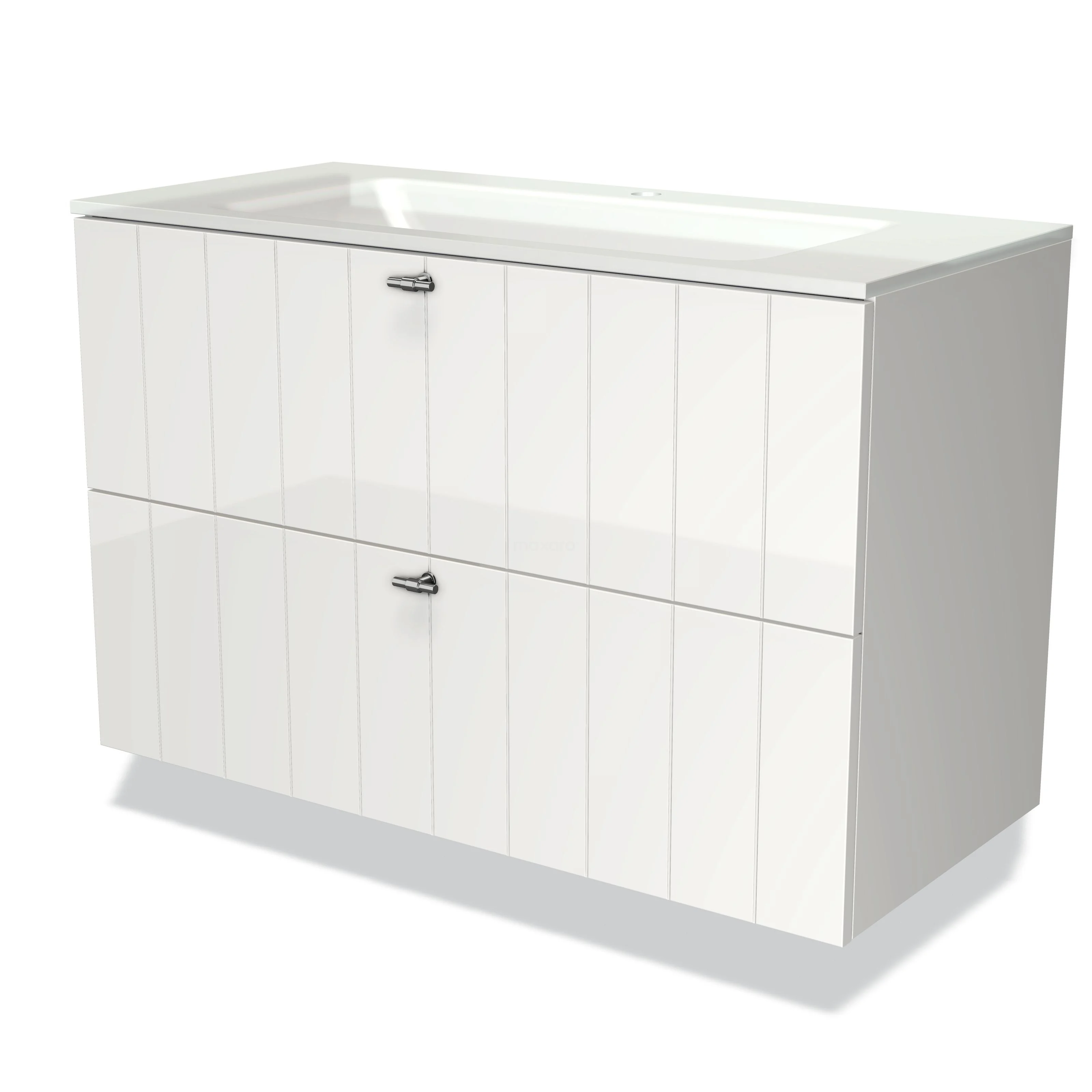 Badmöbel 100cm Modulo Hochglanz Weiß 2 Schubladen Lamellen-Waschbecken Glas