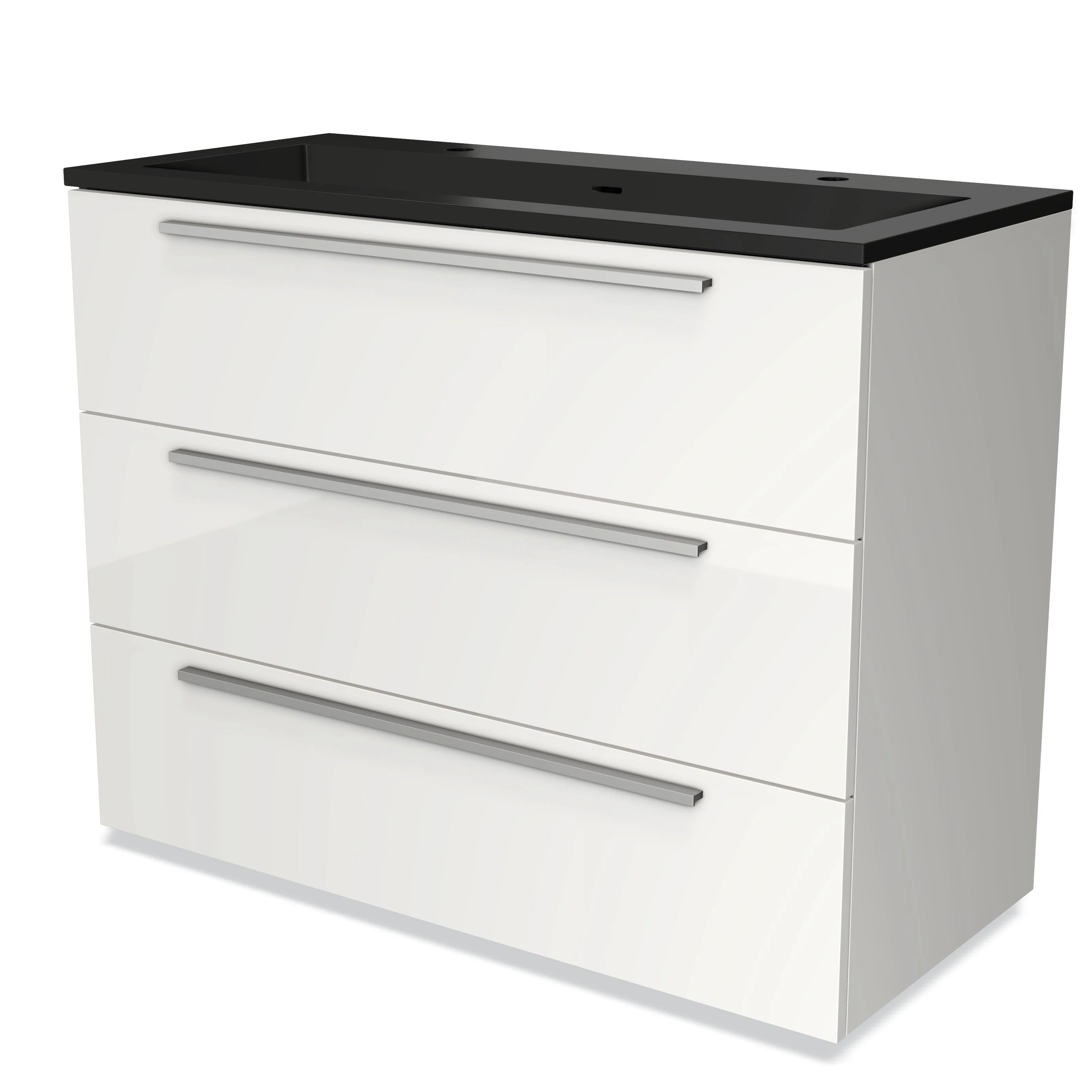 Badmöbel 100cm Modulo Hochglanz Weiß 3 Schubladen Flaches Waschbecken Quarz