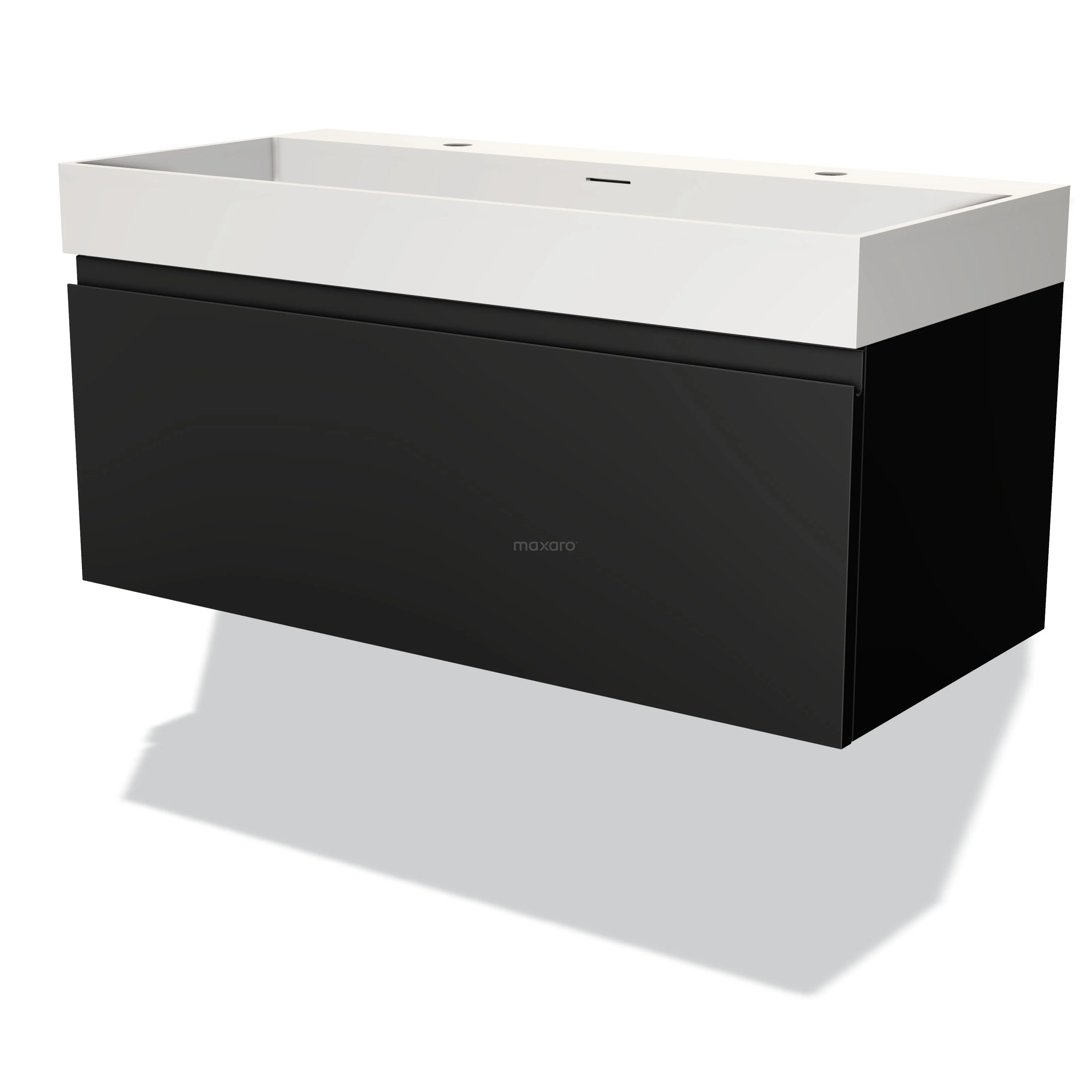 Das bodenstehende Badmöbel (100 cm) ist das Herzstück für die tägliche Körperpflege wie Schminken, Rasieren oder Zähneputzen. Das Waschbecken hat 2 Hahnlöcher und ist ideal für die gleichzeitige Nutzung durch mehrere Personen. Das Möbel bietet außerdem genügend Platz, um Ihre WC- und Pflegeprodukte ordentlich zu verstauen.