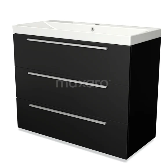 Badmöbel 100cm Modulo Matt Schwarz 3 Schubladen Flaches Waschbecken Keramik