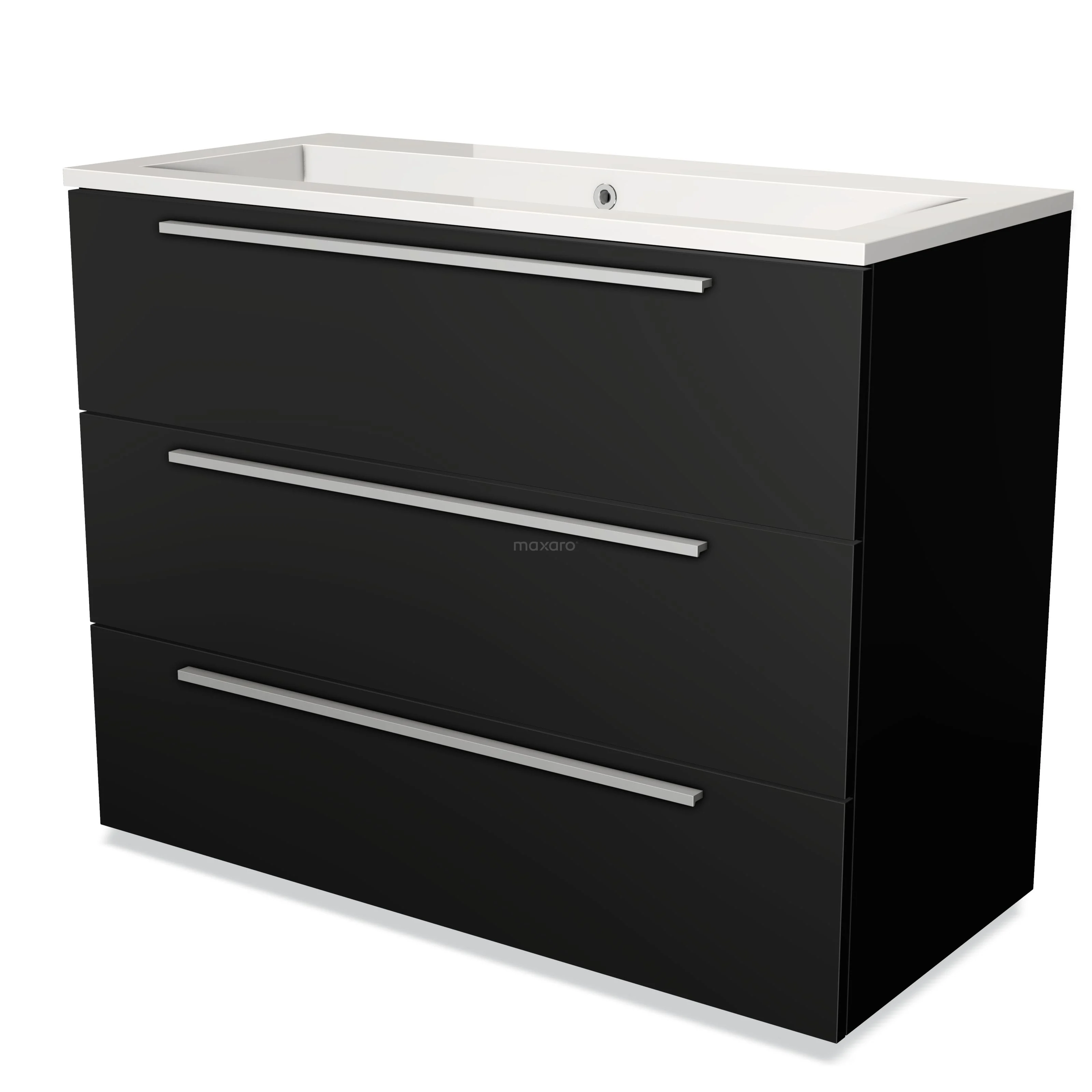 Badmöbel 100cm Modulo Matt Schwarz 3 Schubladen Flaches Waschbecken Mineralguss