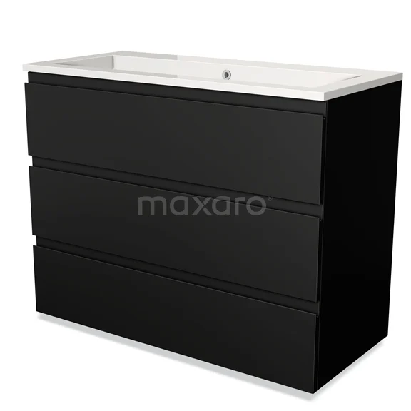 Badmöbel 100cm Modulo Matt Schwarz 3 Schubladen Griffloses Waschbecken Mineralguss