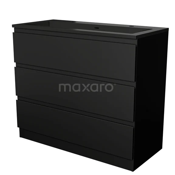 Das bodenstehende Badmöbel (100 cm) ist das Herzstück für die tägliche Körperpflege wie Schminken, Rasieren oder Zähneputzen. Das Waschbecken hat 2 Hahnlöcher und ist ideal für die gleichzeitige Nutzung durch mehrere Personen. Das Möbel bietet außerdem genügend Platz, um Ihre WC- und Pflegeprodukte ordentlich zu verstauen.