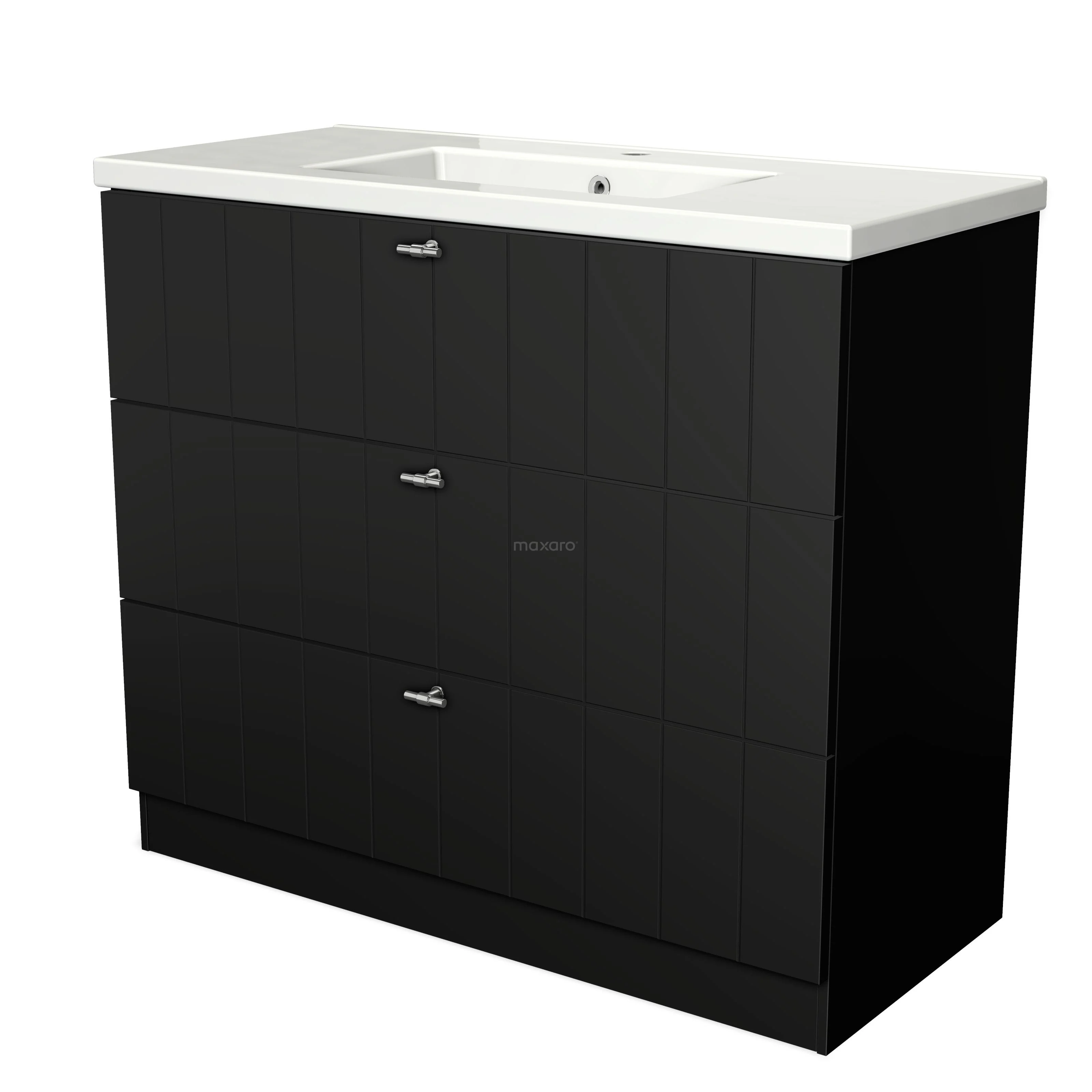 Badmöbel 100cm Modulo Matt Schwarz 3 Schubladen Stehendes Schubladen-Waschbecken aus Keramik