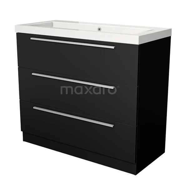 Badmöbel 100cm Modulo Matt Schwarz 3 Schubladen Stehendes Waschbecken Mineralguss