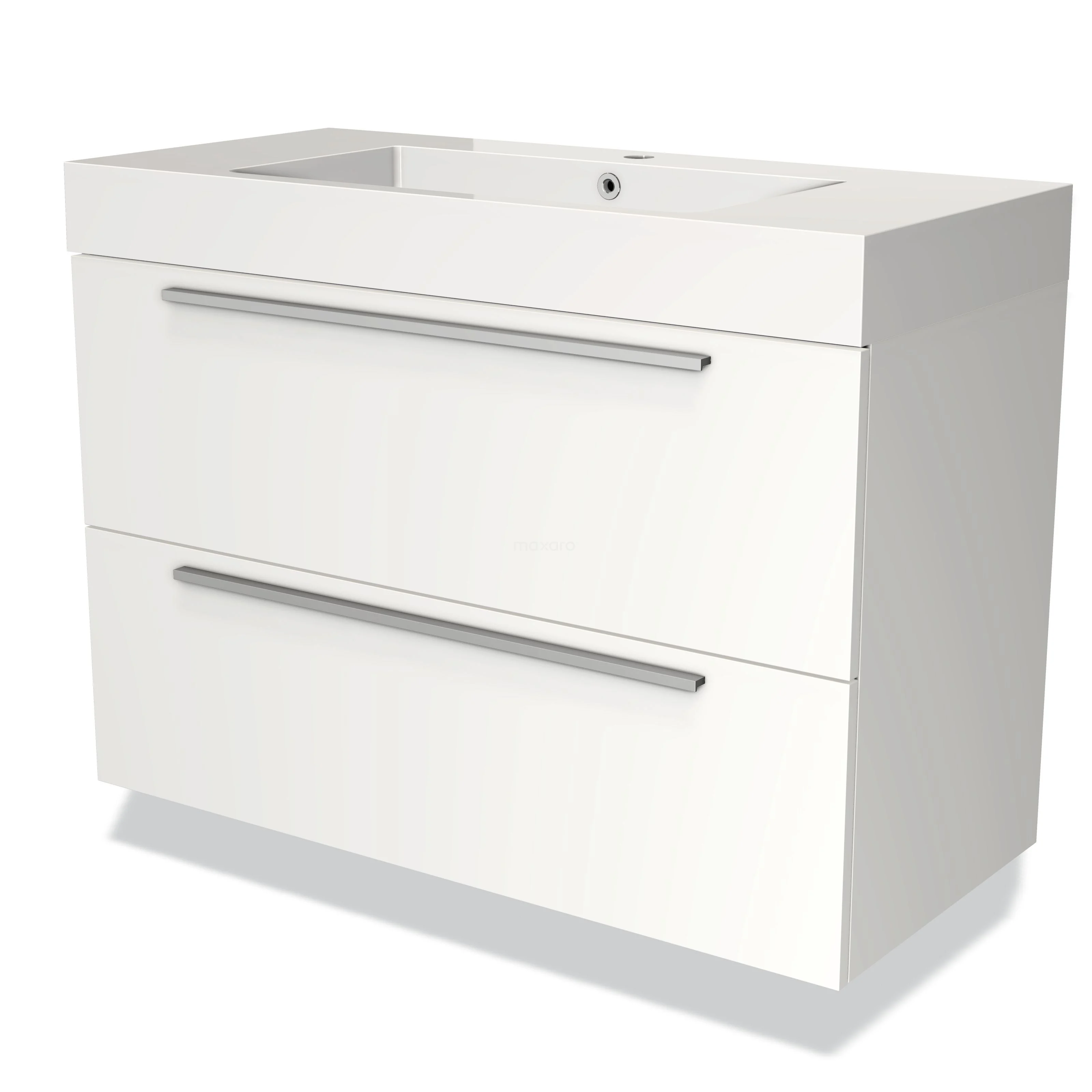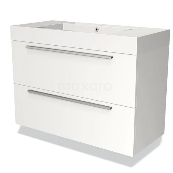 Badmöbel 100cm Modulo Matt Weiß 2 Schubladen Flaches Waschbecken Mineralguss