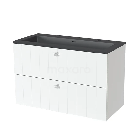 Badmöbel 100cm Modulo Matt Weiß 2 Schubladen Lamellenwaschbecken Quarz