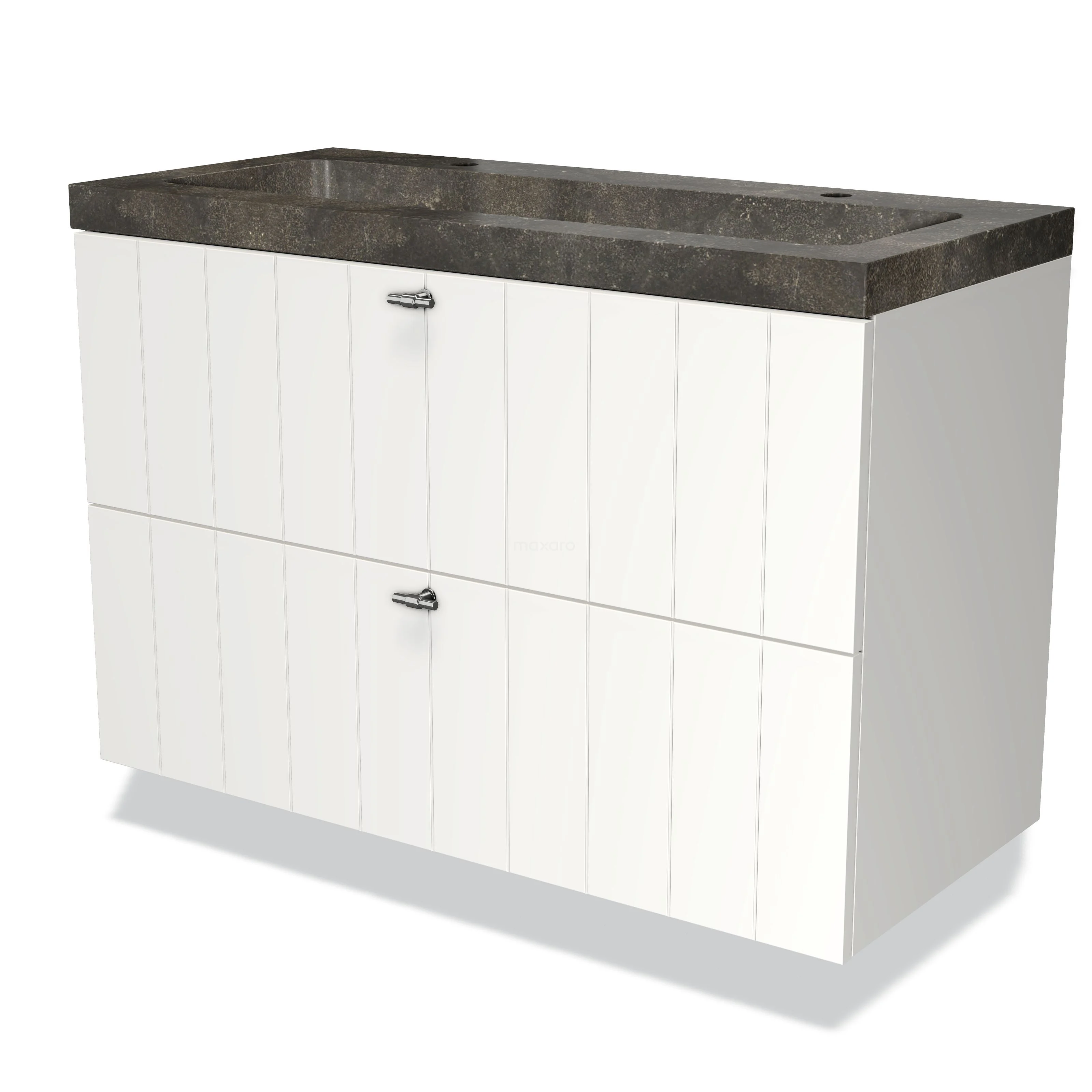 Badmöbel 100cm Modulo Matt Weiß 2 Schubladen Slat Waschbecken Naturstein Blue Stone
