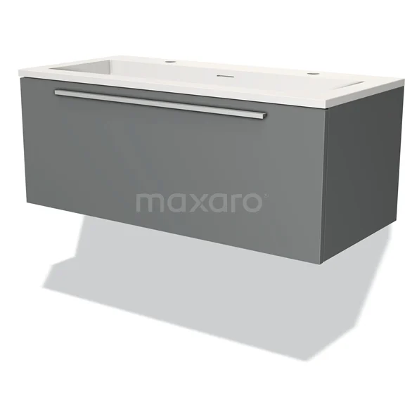Badmöbel 100cm Modulo Mittelgrau 1 Schublade Flaches Waschbecken Solid Surface
