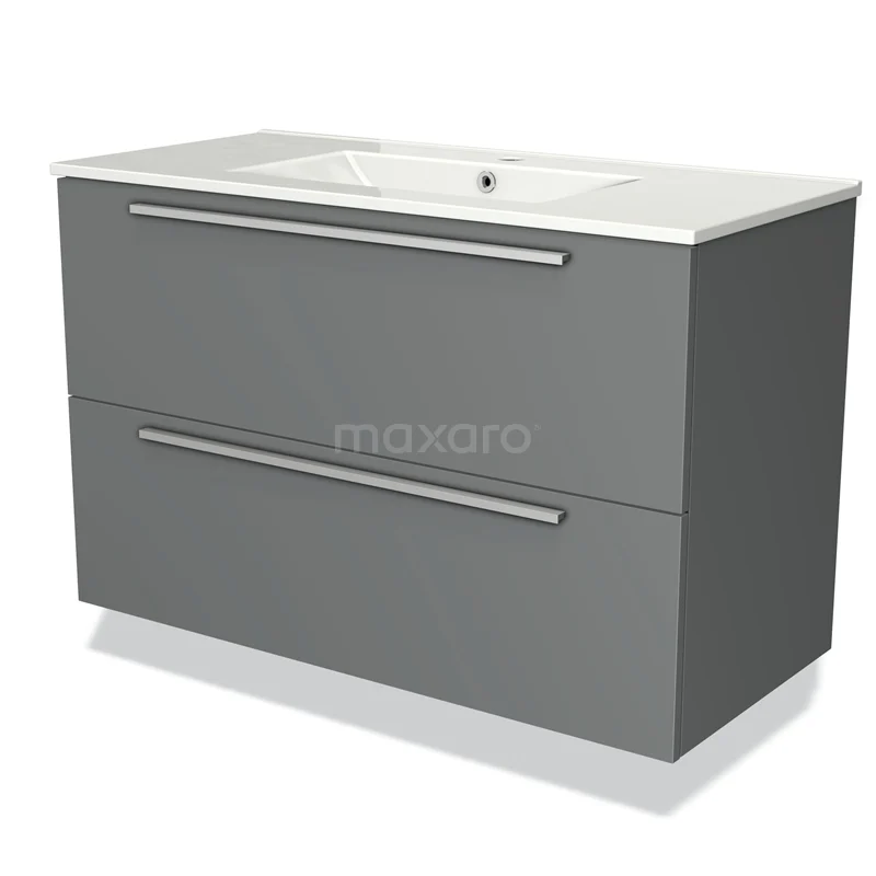Badmöbel 100cm Modulo Mittelgrau 2 Schubladen Flaches Waschbecken aus Keramik