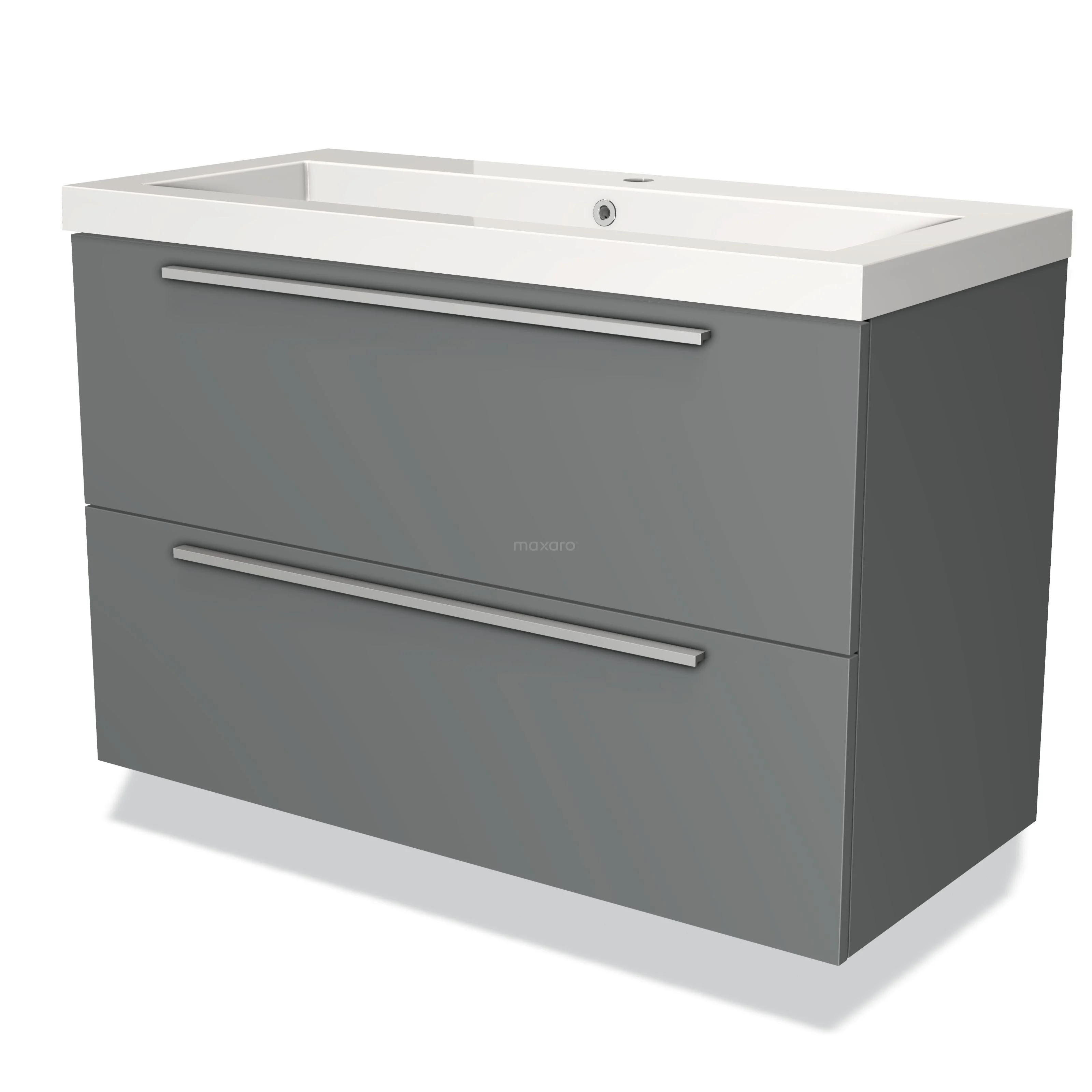 Badmöbel 100cm Modulo Mittelgrau 2 Schubladen Flaches Waschbecken Mineralguss