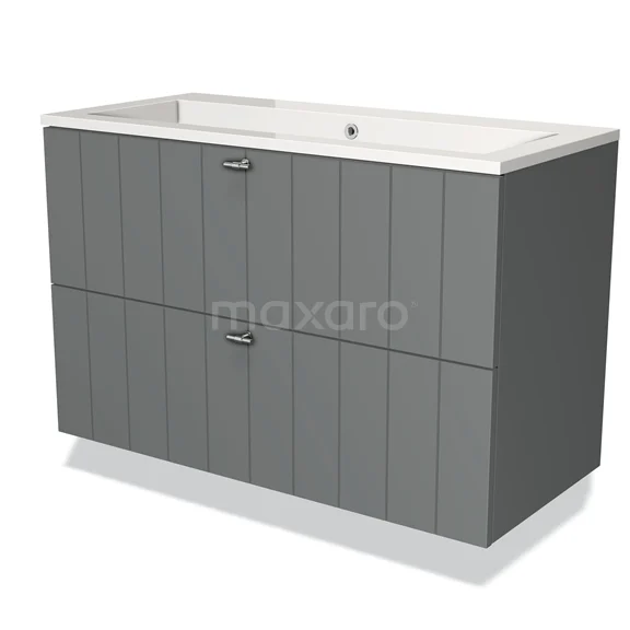 Badmöbel 100cm Modulo Mittelgrau 2 Schubladen Lattenrost Waschbecken Mineralguss