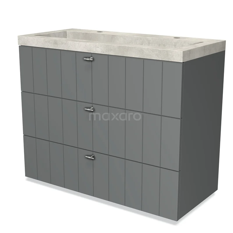 Badmöbel 100cm Modulo Mittelgrau 3 Schubladen-Lamellen-Waschbecken Beton