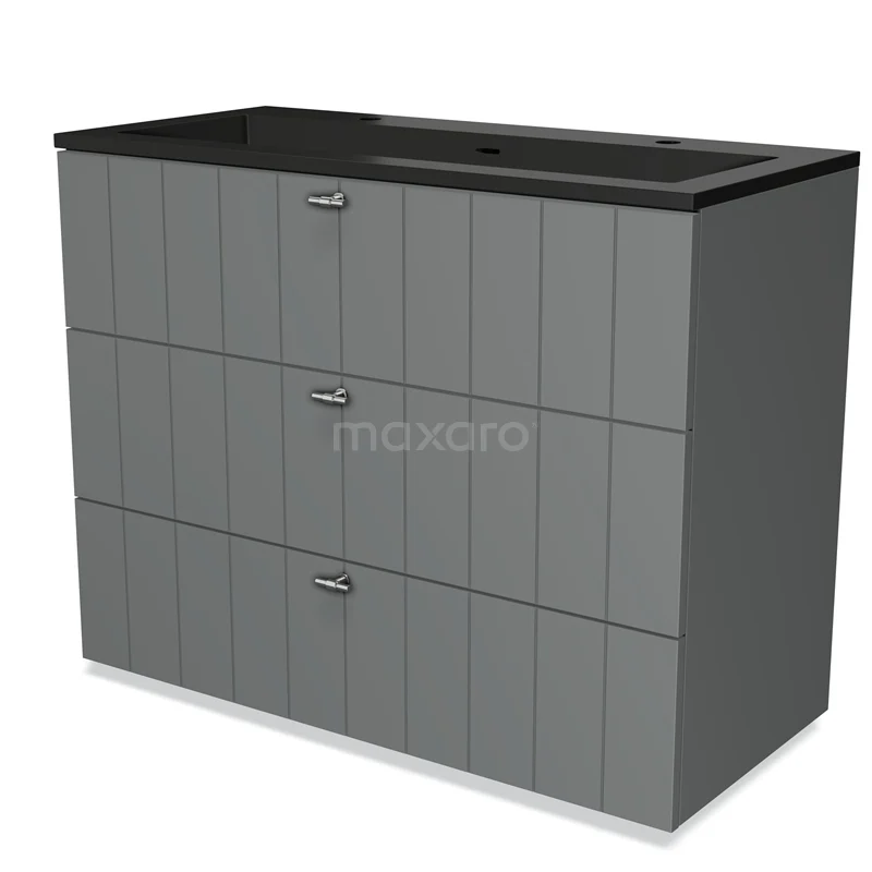 Badmöbel 100cm Modulo Mittelgrau 3 Schubladen Laminat Waschbecken Quarz