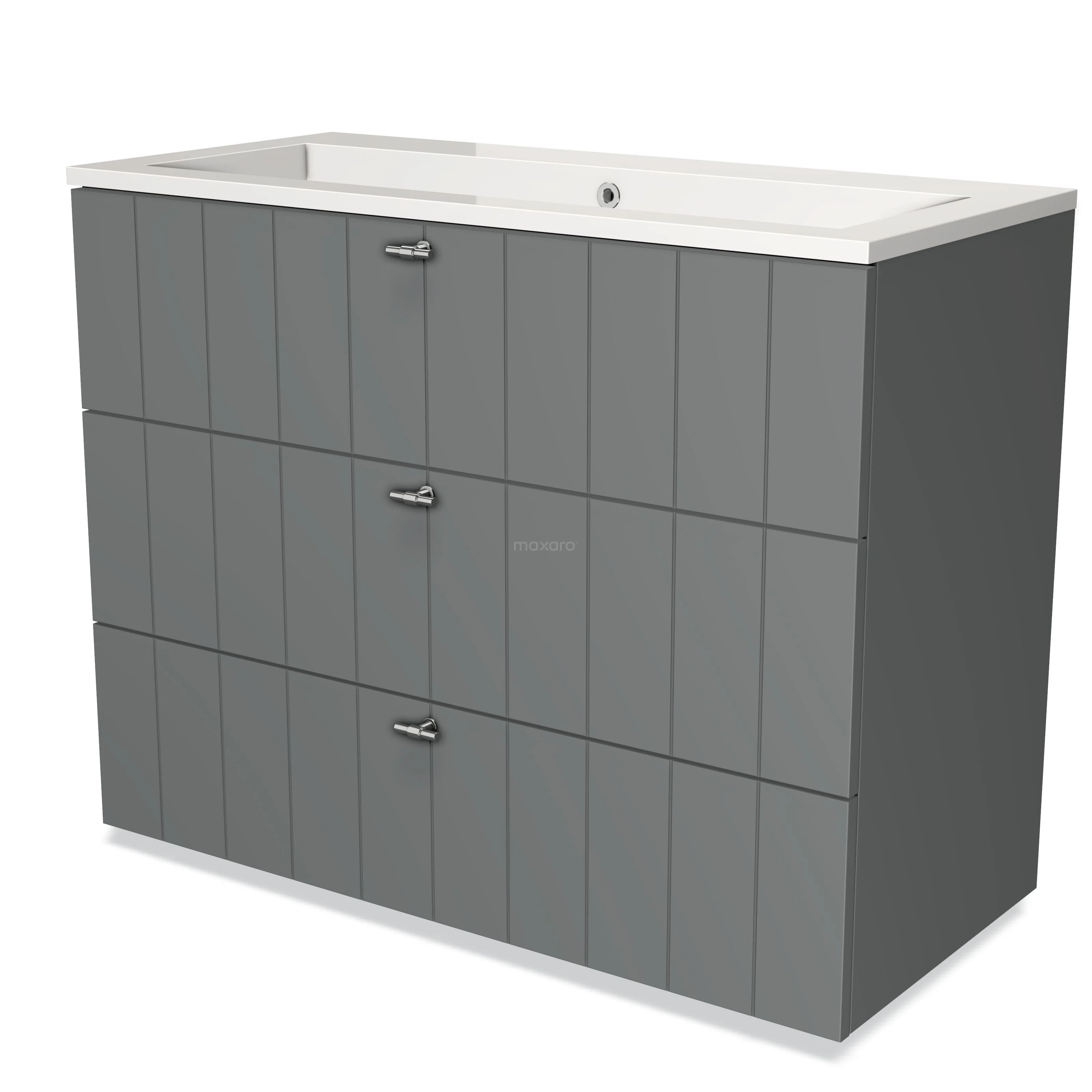 Badmöbel 100cm Modulo Mittelgrau 3 Schubladen Lattenrost Waschbecken Mineralguss