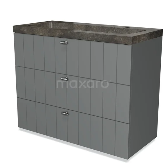 Badmöbel 100cm Modulo Mittelgrau 3 Schubladen Waschbecken aus Naturstein Blaustein