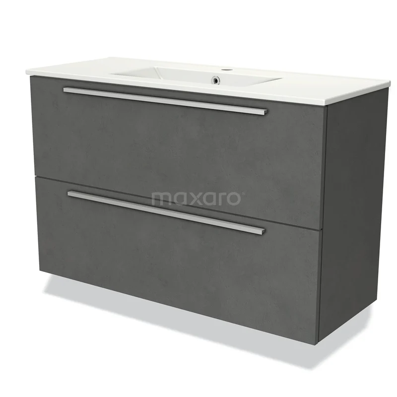 Badmöbel 100cm Modulo Slim Dunkelgrau Beton 2 Schubladen Flaches Waschbecken Keramik