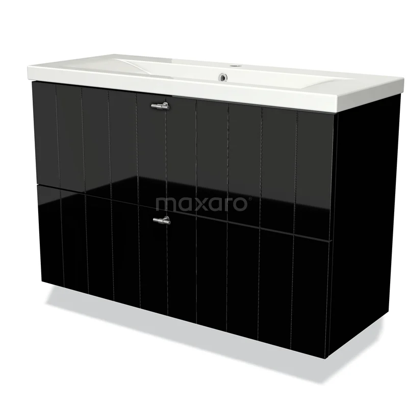 Badmöbel 100cm Modulo Slim Hochglanz Schwarz 2 Schubladen Lamellenwaschbecken Keramik