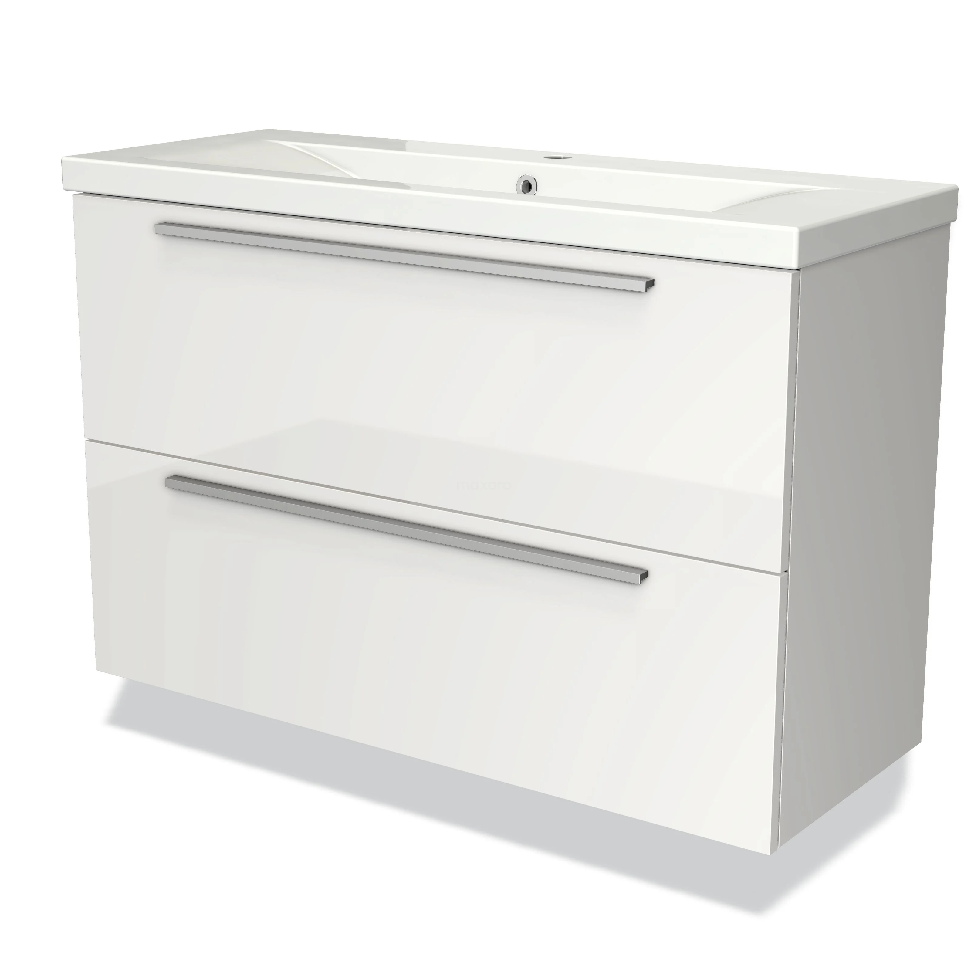 Modulo Slim Waschtische | 100 cm Hochglanz Weiß Flach front Keramik 2 übereinanderliegende Schubladen