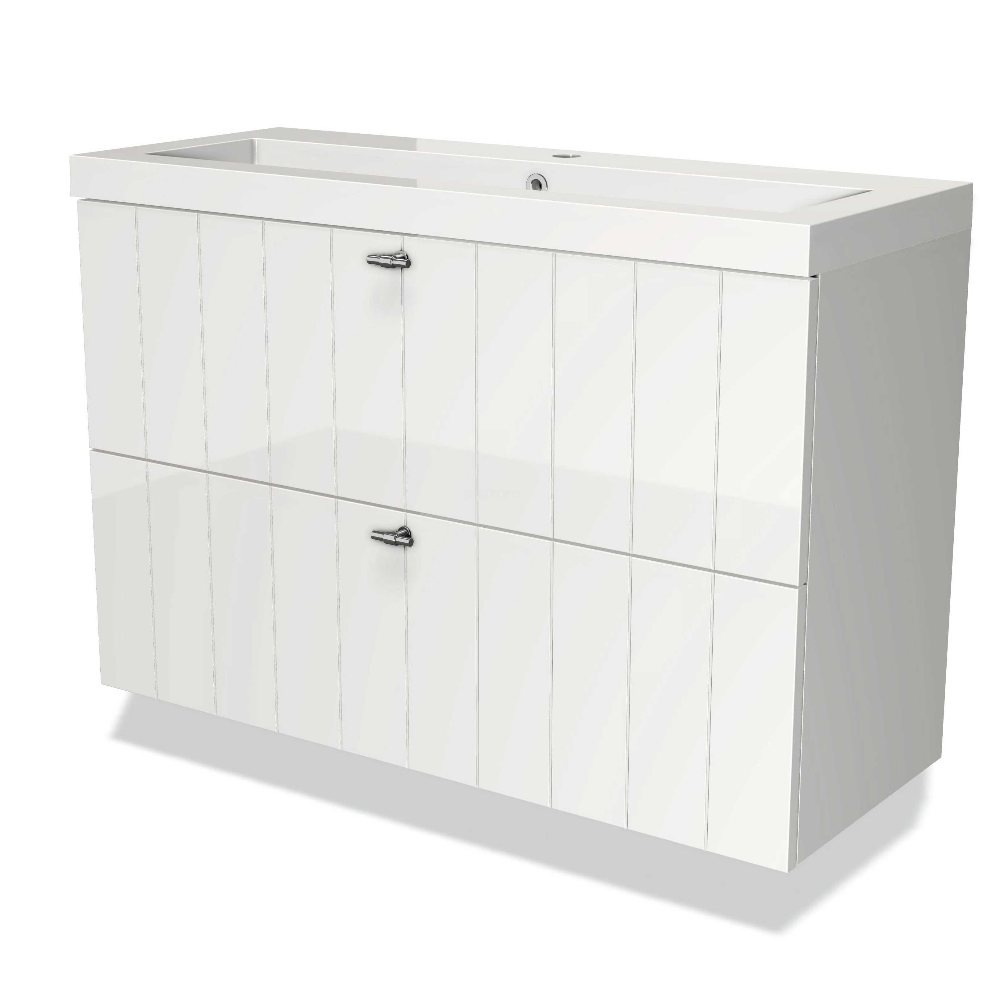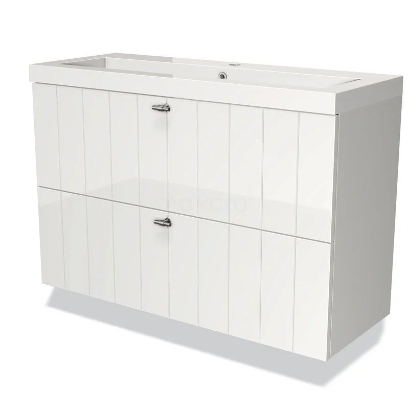 Badmöbel 100cm Modulo Slim Hochglanz Weiß 2 Schubladen Lamellenwaschbecken Mineralguss