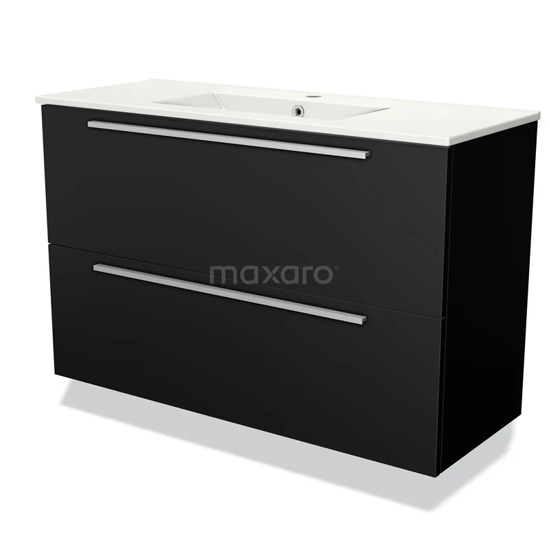 Badmöbel 100cm Modulo Slim Matt Schwarz 2 Schubladen Flaches Waschbecken aus Keramik