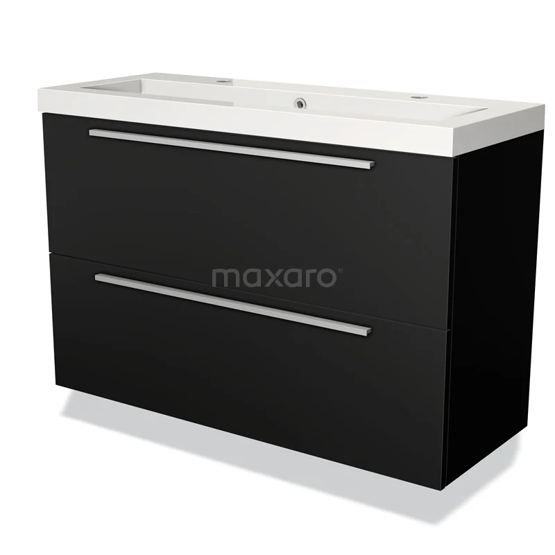 Badmöbel 100cm Modulo Slim Matt Schwarz 2 Schubladen Flaches Waschbecken Mineralguss