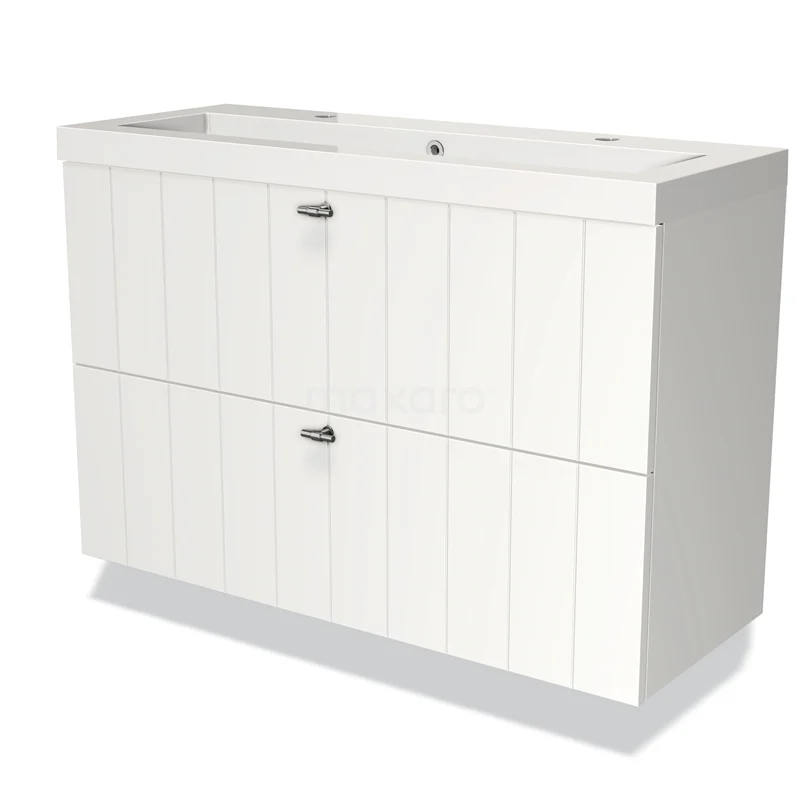 Badmöbel 100cm Modulo Slim Matt Weiß 2 Schubladen Slat Waschbecken Mineralguss