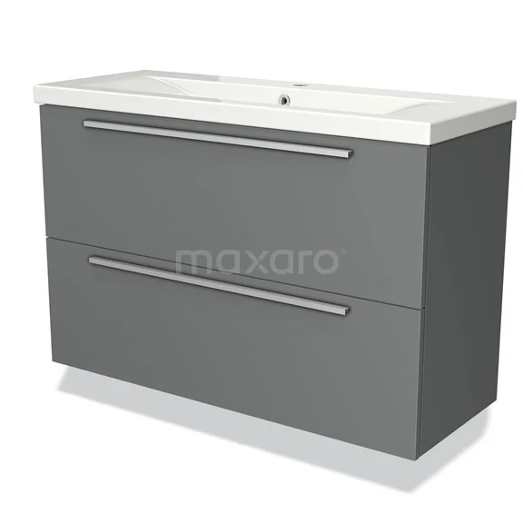 Badmöbel 100cm Modulo Slim Mittelgrau 2 Schubladen Flaches Waschbecken aus Keramik