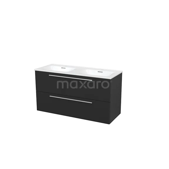 Badmöbel 120cm Modulo+ Carbon 2 Schubladen Flaches Waschbecken Keramik