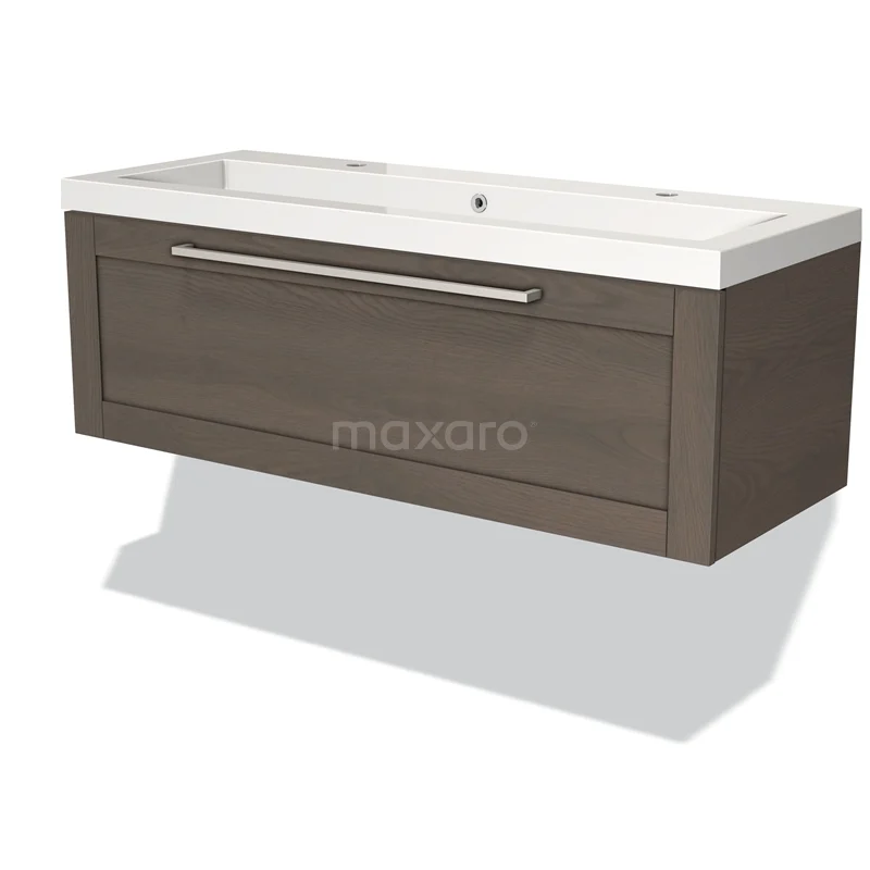 Badmöbel 120cm Modulo dunkelbraune Eiche 1 Schubladenrahmen Waschbecken Mineralguss