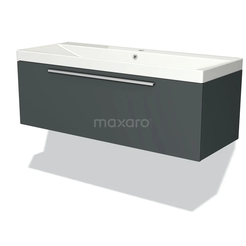 Badmöbel 120cm Modulo Dunkelgrau 1 Schublade Flaches Waschbecken aus Keramik