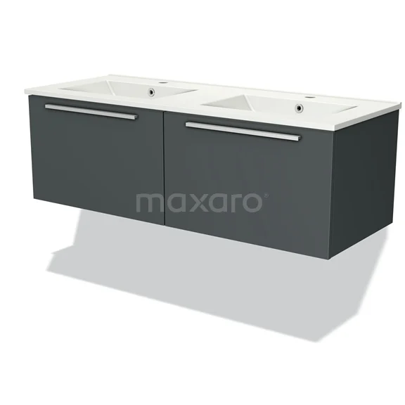 Badmöbel 120cm Modulo Dunkelgrau 2 Schubladen Flaches Waschbecken aus Keramik