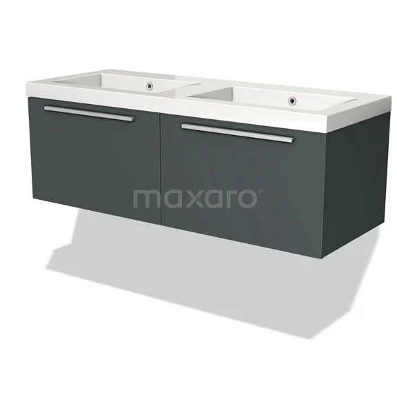 Badmöbel 120cm Modulo Dunkelgrau 2 Schubladen Flaches Waschbecken Mineralguss
