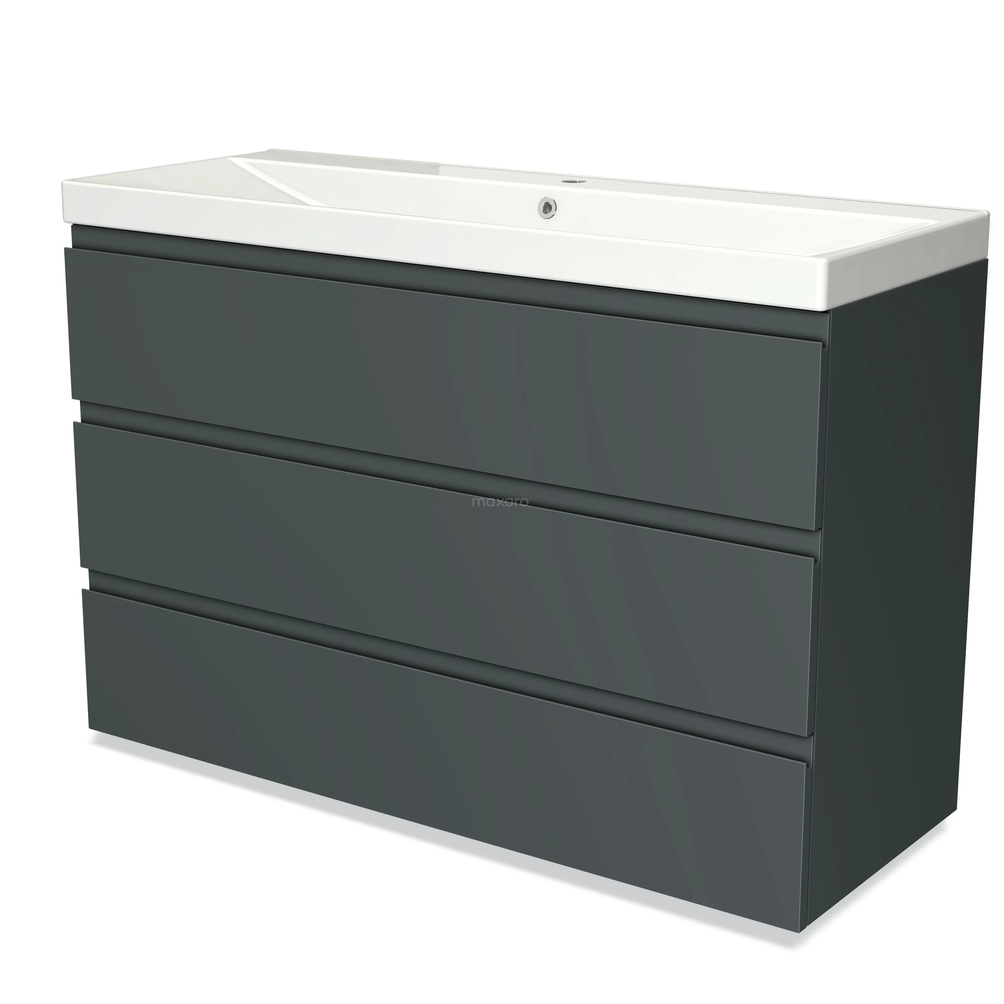 Badmöbel 120cm Modulo Dunkelgrau 3 Schubladen griffloses Waschbecken aus Keramik