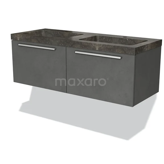 Badmöbel 120cm Modulo Dunkelgrau Beton 2 Schubladen Flaches Waschbecken Naturstein Blau