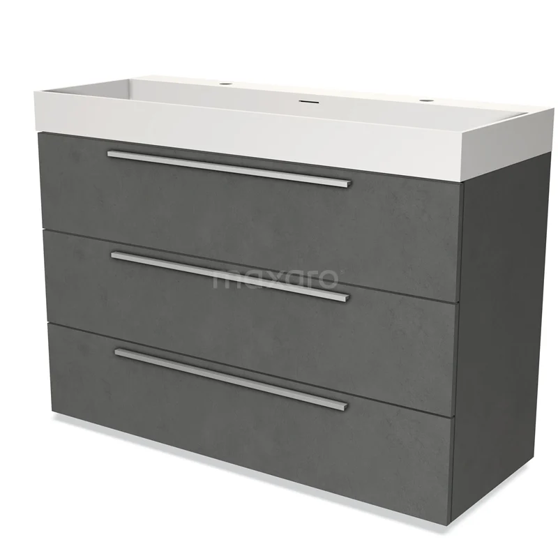 Badmöbel 120cm Modulo Dunkelgrau Beton 3 Schubladen Flaches Waschbecken Solid Surface